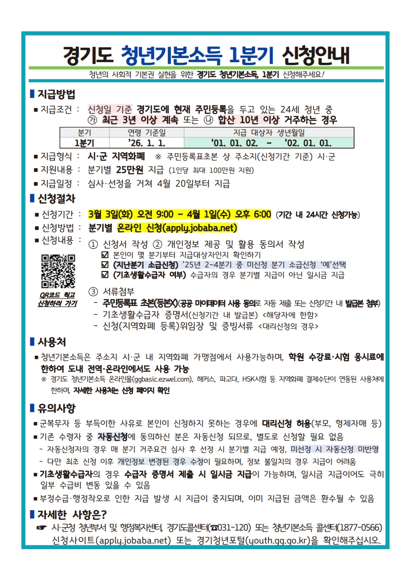 <2026 경기도 청년기본소득 1분기 신청안내>